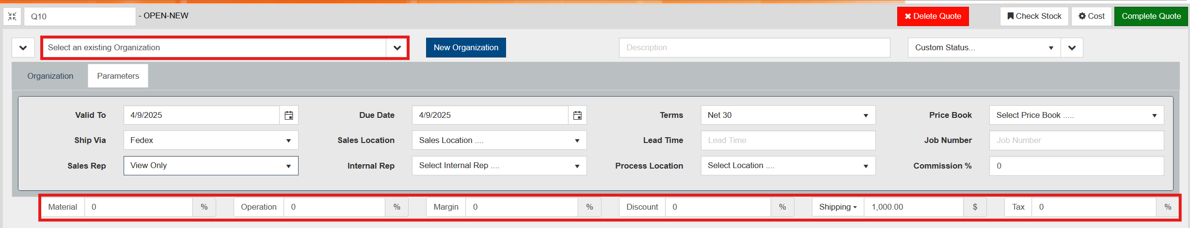 Top level quote parameters [including organization settings, margins, shipping and tax] can impact the price of your line item. It is recommended that these are established prior to locking any of your line items. As a result, if these settings change, line items impacted will unlock and apply changes.